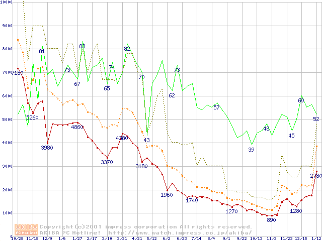 PC133 SDRAM DIMM CasLatency=3の最安値推移
