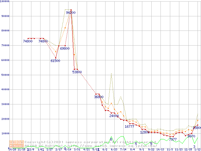 PC133 SDRAM DIMM CasLatency=3 ECC対応の最安値推移