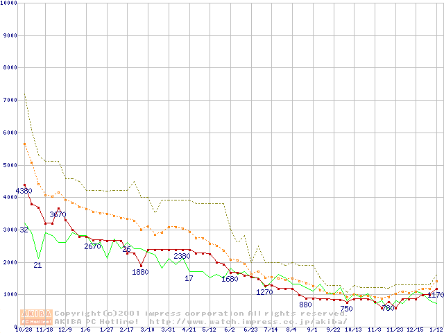 PC133 SDRAM DIMM CasLatency=3の最安値推移