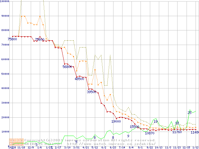 メモリ主要製品の最安値推移