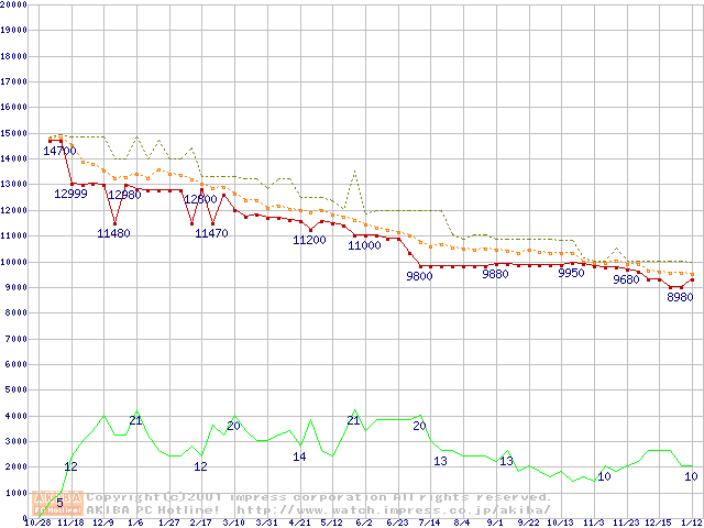 WD Caviar (7200rpm,UltraATA/100,20GB/Platter)の最安値推移