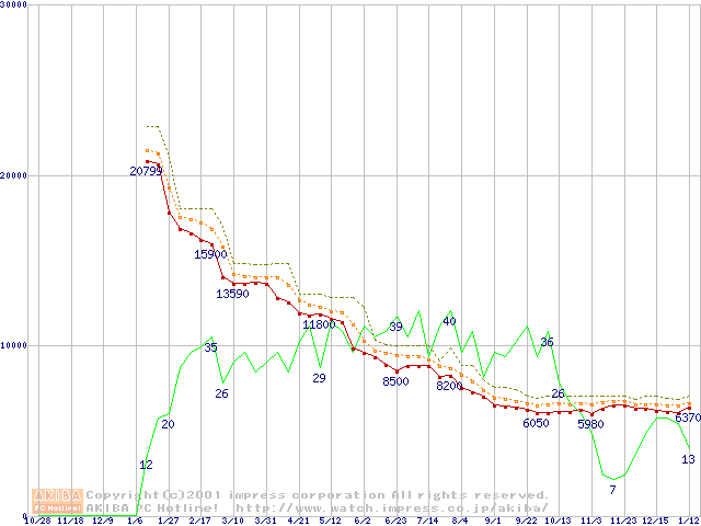Celeron 800MHz FC-PGA リテールパッケージの価格推移