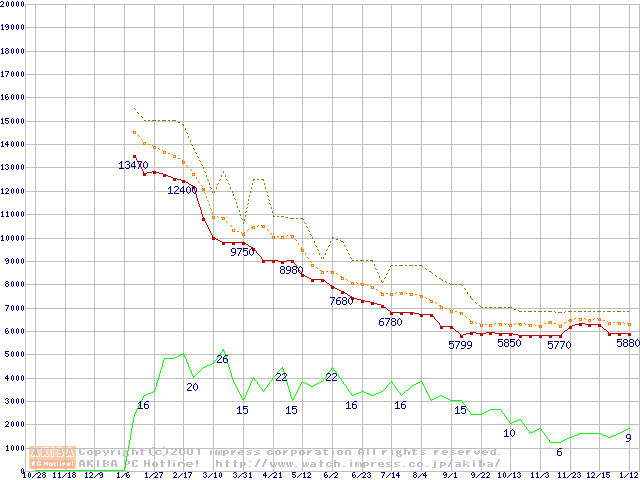 Socket A (Spitfire,PGA,FSB 200MHz,L2 64KB)の最安値推移