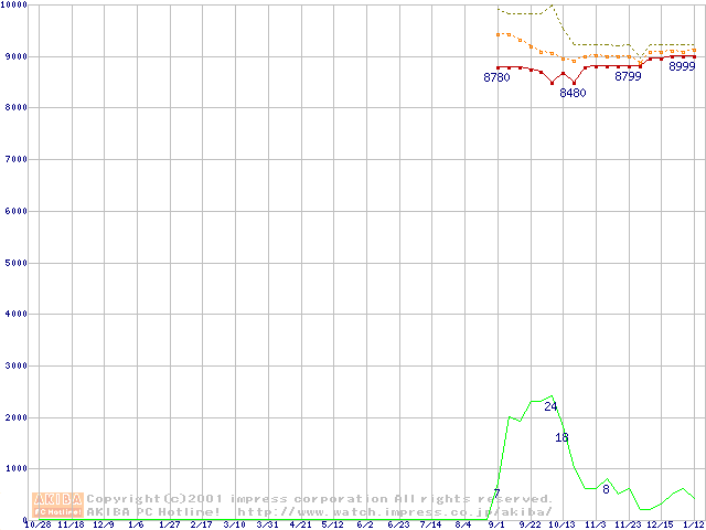 Deskstar 60GXP (7200rpm,UltraATA/100 2MB)の最安値推移