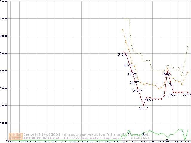 PC133 SDRAM DIMM CasLatency=3 ECC対応 Registeredタイプの最安値推移