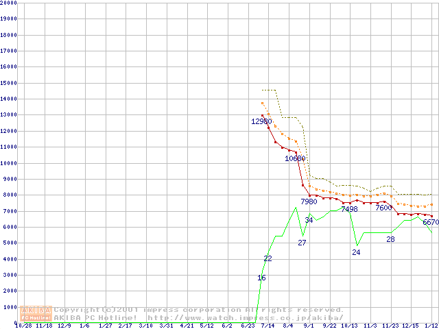 Celeron 900MHz FC-PGA リテールパッケージの価格推移