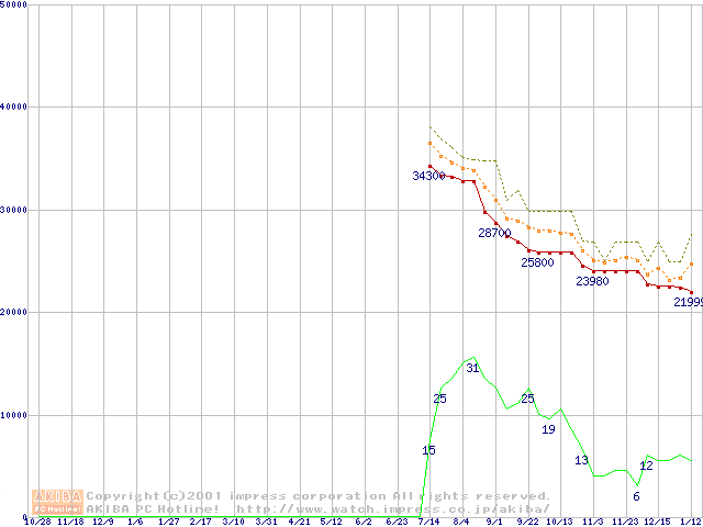 Pentium III 1.13AGHz FC-PGA2 リテールパッケージの価格推移