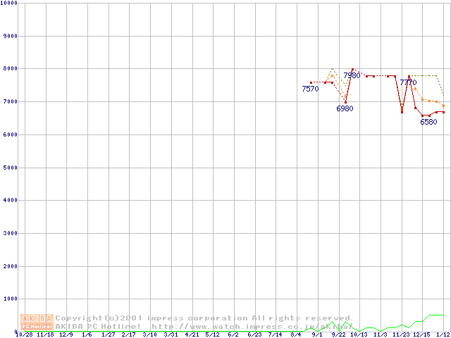Socket 370 (PGA,FSB 133MHz,L2 64KB)の最安値推移