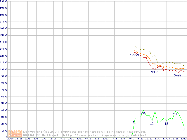Socket A (Morgan,PGA,FSB 200MHz,L2 64KB)の最安値推移