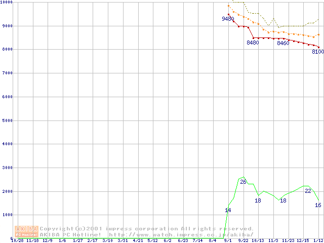 Celeron 950MHz FC-PGA リテールパッケージの価格推移