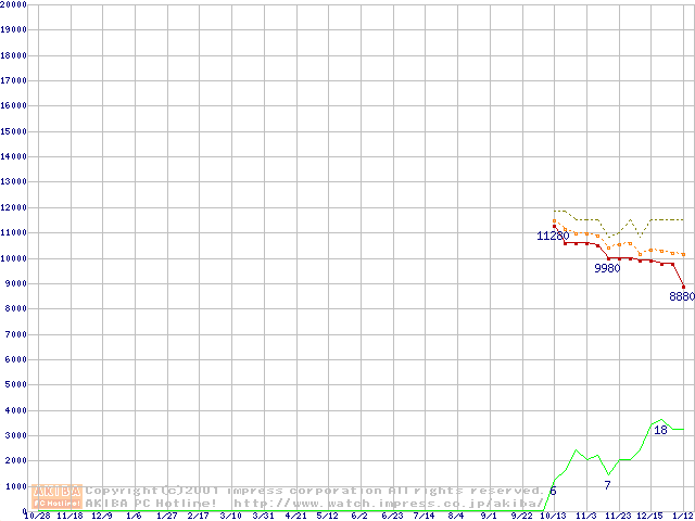 Socket A (Morgan,PGA,FSB 200MHz,L2 64KB)の最安値推移