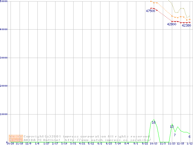 Travelstar 48GH (12.5mm,5400rpm,UltraATA/100,2MB,流体軸受)の最安値推移