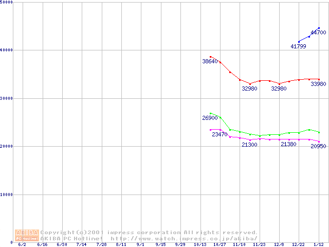 | [↑前グラフ]: | Socket A (Palomino,OPGA,FSB 266MHz,L2 256KB)の最安値推移 |