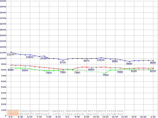 | [↑前グラフ]: | MPG3xxxAH-E (7200rpm,UltraATA/100)の最安値推移 |