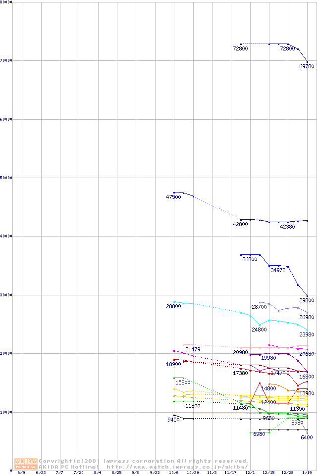 CPU主要製品の最安値推移