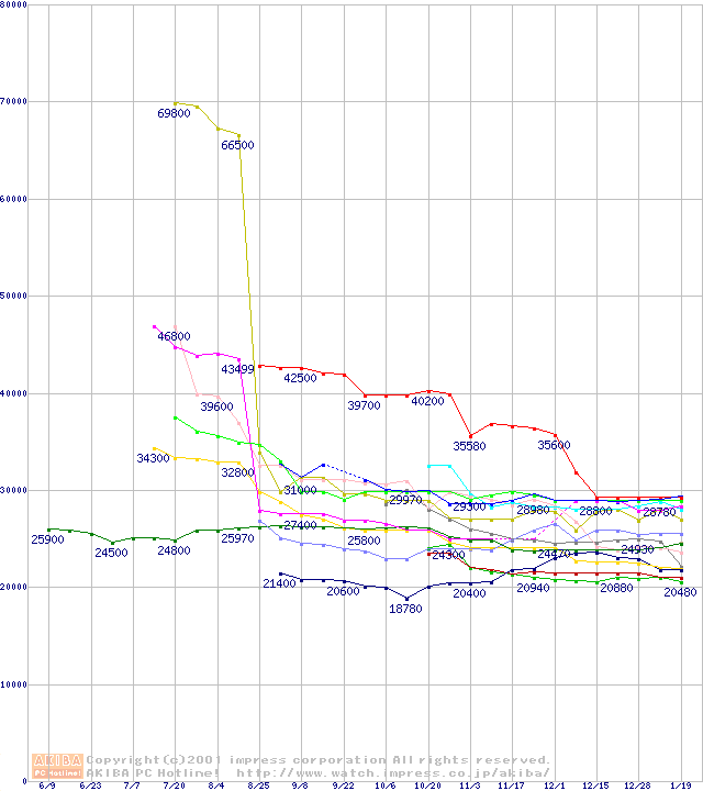 CPU主要製品(最安値1万円~2万円未満)の最安値推移