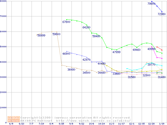 CPU主要製品(最安値3万円以上)の最安値推移