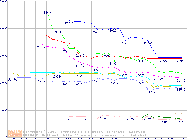 Socket 370・FSB 133MHzの最安値推移