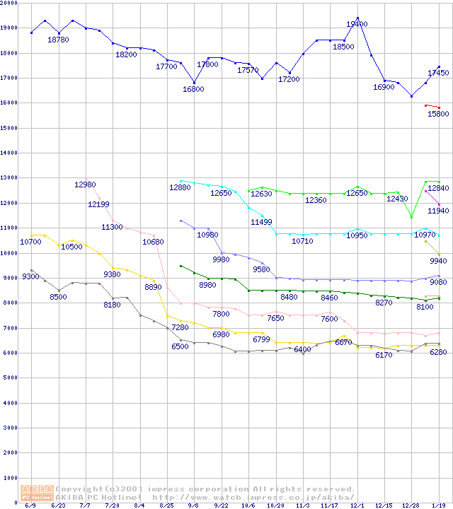 Socket 370・FSB 133MHzの最安値推移