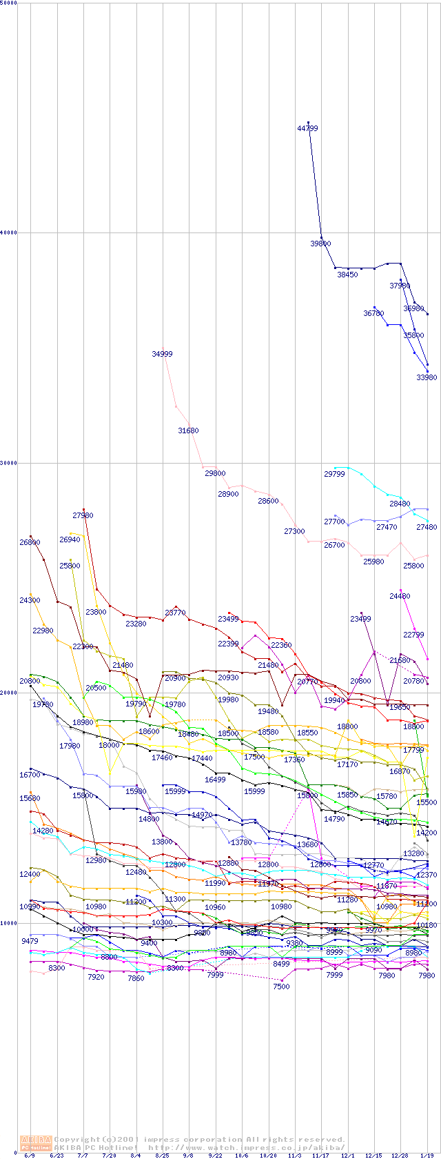 HDD主要製品の最安値推移