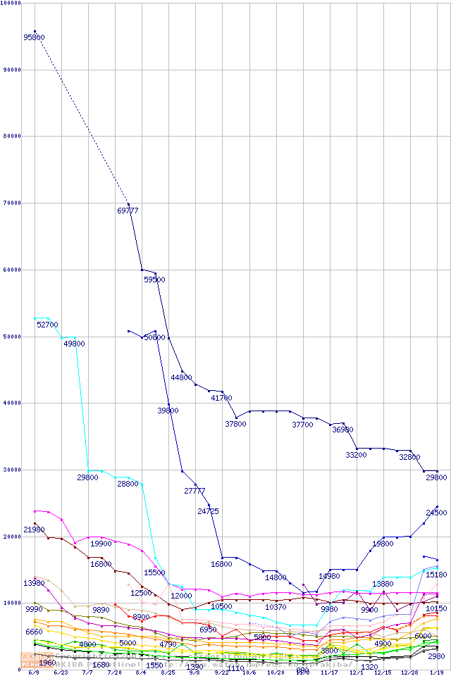 メモリ主要製品の最安値推移