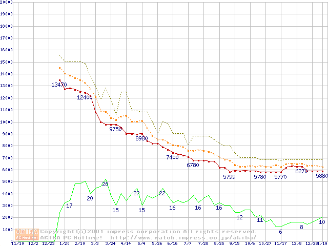 Socket A (Spitfire,PGA,FSB 200MHz,L2 64KB)の最安値推移