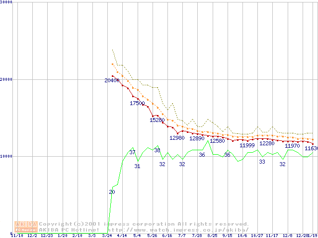 Deskstar 60GXP (7200rpm,UltraATA/100 2MB)の最安値推移