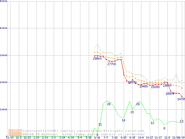 Socket A (Palomino,PGA,FSB 266MHz,L2 256KB)の最安値推移
