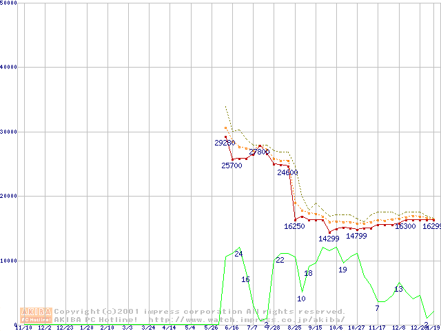 Athlon 1.4GHz(FSB266) (Thunderbird) リテールパッケージの価格推移