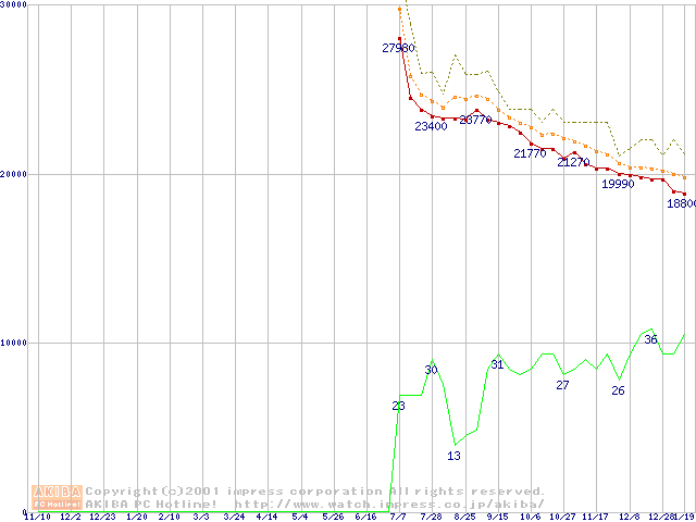 Barracuda ATA IV (7200rpm,UltraATA/100 2MB 40GB/Platter,流体軸受)の最安値推移
