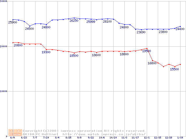 | [↓次グラフ]: | Socket 370 (FC-PGA2,FSB 100MHz,L2 256KB)の最安値推移 |