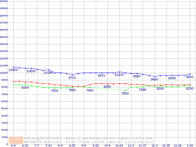 | [↑前グラフ]: | MPG3xxxAH-E (7200rpm,UltraATA/100)の最安値推移 |