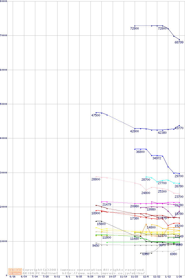 CPU主要製品の最安値推移