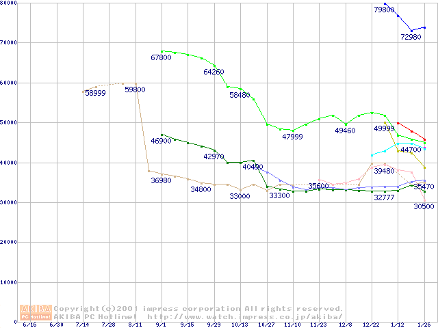 CPU主要製品(最安値2万円~3万円未満)の最安値推移