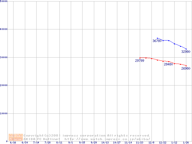 | [↓次グラフ]: | HDD 10GB~20GB未満(7200rpmクラス)の最安値推移 |