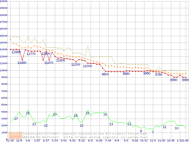 WD Caviar (7200rpm,UltraATA/100,20GB/Platter)の最安値推移