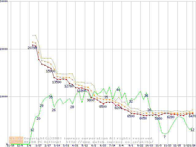 Celeron 800MHz FC-PGA リテールパッケージの価格推移