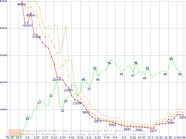 メモリ主要製品の最安値推移