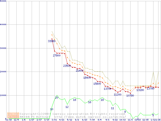 Socket A (Thunderbird,PGA,FSB 200MHz,L2 256KB)の最安値推移