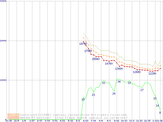 U6 (5400rpm,UltraATA/100 2MB 40GB/Platter)の最安値推移