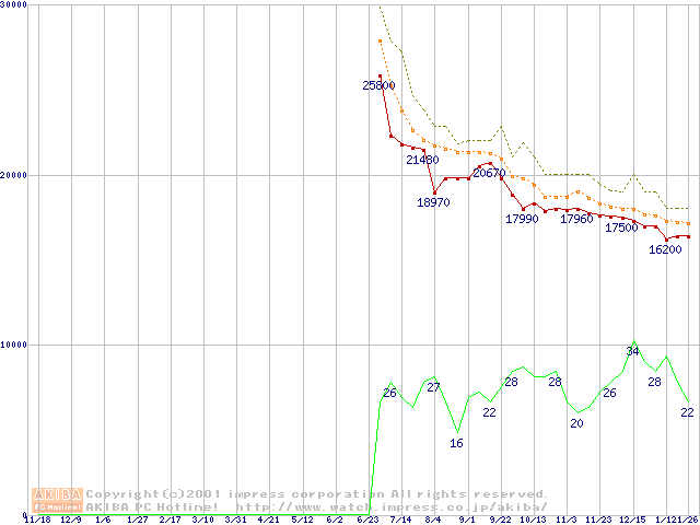 U6 (5400rpm,UltraATA/100 2MB 40GB/Platter)の最安値推移