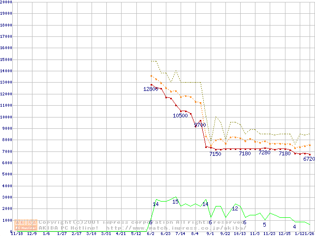 Socket A (Spitfire,PGA,FSB 200MHz,L2 64KB)の最安値推移