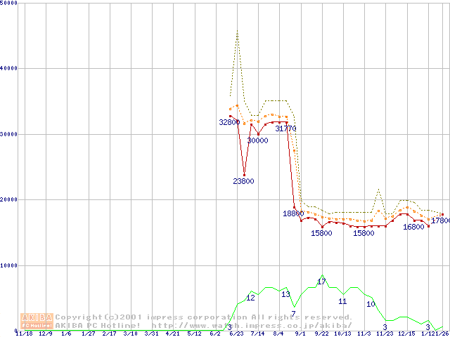 Pentium 4 1.50GHz(423pin)リテールパッケージ(RIMMなし)の価格推移