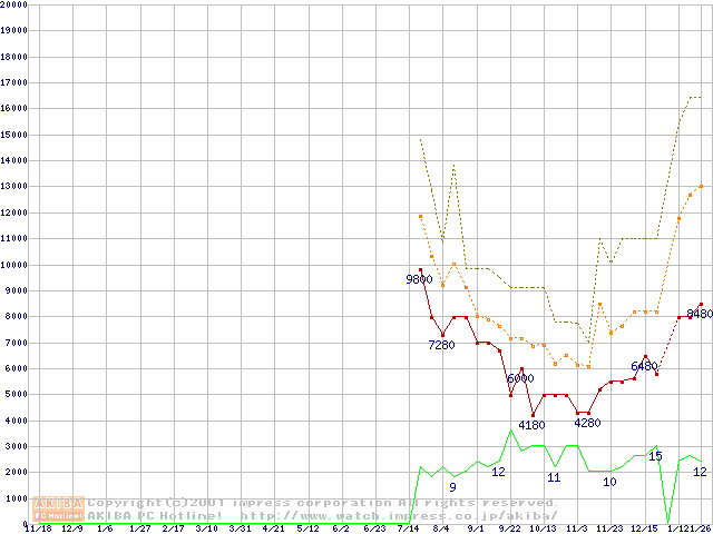 メモリ主要製品の最安値推移