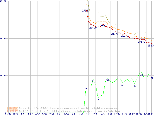 Barracuda ATA IV (7200rpm,UltraATA/100 2MB 40GB/Platter,流体軸受)の最安値推移