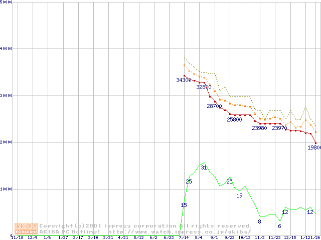 Pentium III 1.13AGHz FC-PGA2 リテールパッケージの価格推移