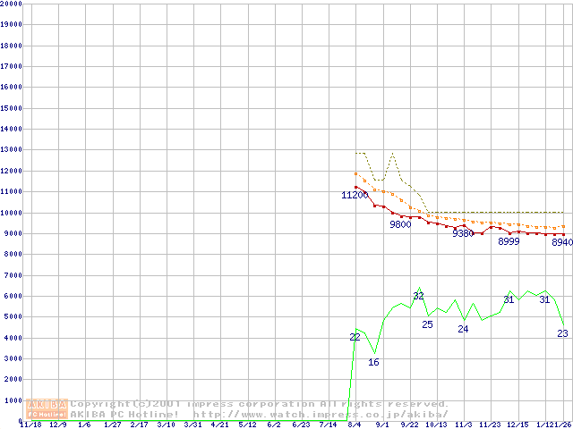Barracuda ATA IV (7200rpm,UltraATA/100 2MB 40GB/Platter,流体軸受)の最安値推移