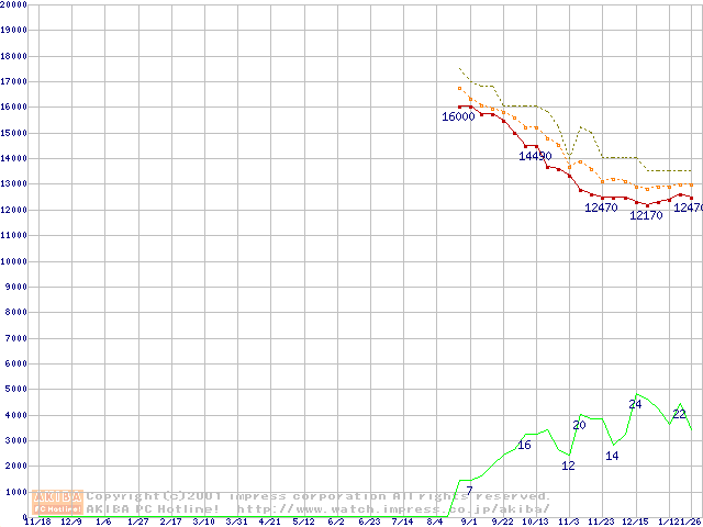 DiamondMax D540X (5400rpm,UltraATA/100,40GB/Platter)の最安値推移