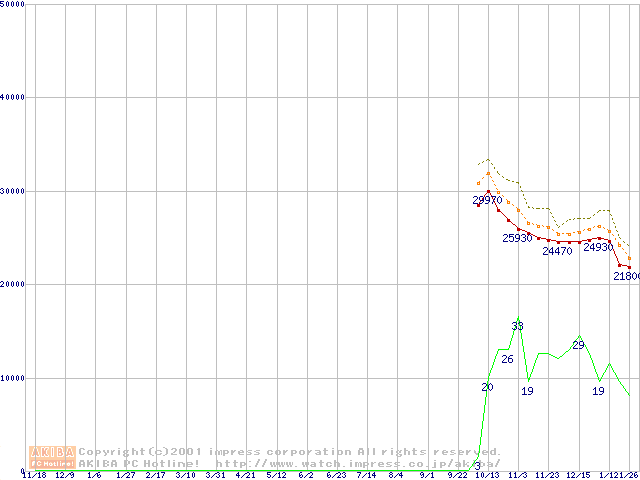 Socket A (Palomino,OPGA,FSB 266MHz,L2 256KB)の最安値推移