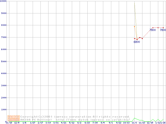 Socket A (Palomino,PGA,FSB 266MHz,L2 256KB)の最安値推移